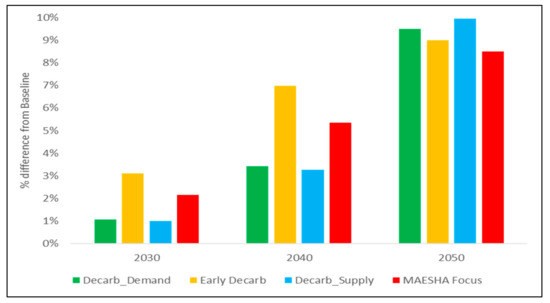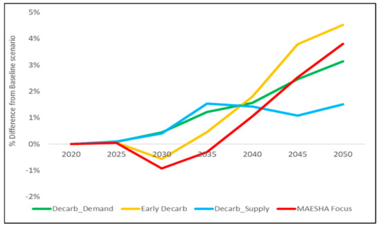3.5. Differences between the Decarbonization and Baseline Scenarios