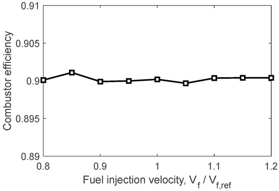 Fuel injection velocity is another control parameter to be considered. In reality, fuel injection velocity can be realized by modifications of the fuel injector geometry (for example those in Ref [47]). However, due to the simplification of spray modeling adopted in the present work, parametric changes in fuel injection velocity can be calculated directly. Figure 17 shows the effect of fuel injection velocity on combustion efficiency. The trend line remains almost constant with no significant change when fuel injection velocity is modified, indicating that fuel injection velocity has no impact on combustion efficiency.