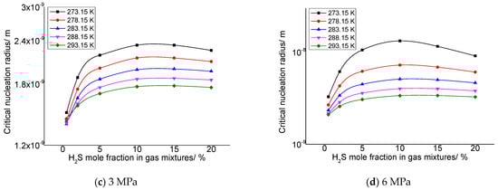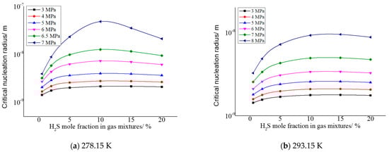 - With the increase in temperature after throttling, the critical nucleation radius of sulfur nuclei decreases gradually. With the increase in pressure after throttling, the nucleation radius increases gradually. With the increase in H2S concentration in the gas phase, the sulfur nucleation radius increases first and then changes little.