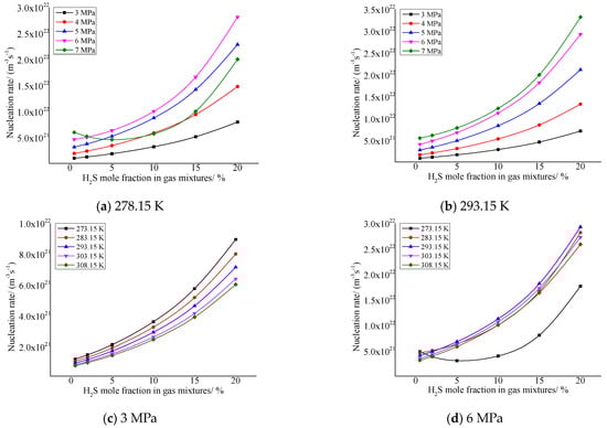 - With the increase in temperature after throttling, the nucleation rate of sulfur crystal nuclei generally decreases. With the increase in pressure after throttling, the nucleation rate increases first and then decreases. The increase in H2S concentration always promotes the nucleation rate of sulfur crystal nuclei.