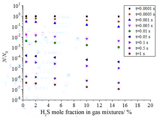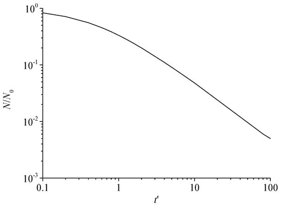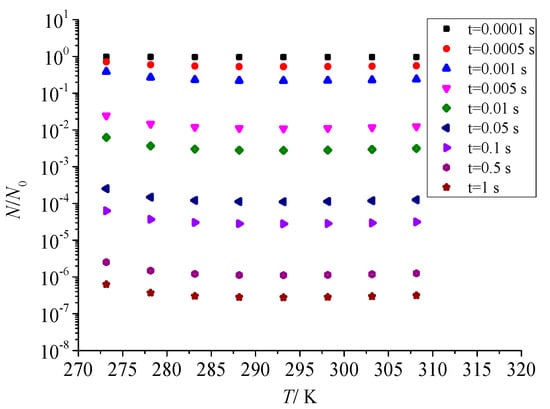 When , is the number of sulfur particles in unit space, and the variation of the number of sulfur particles with time can be obtained according to Equation (34), as shown in Equation (35), where and is the total number of particles at time t.