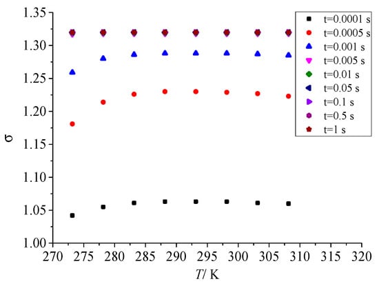 where is the dimensionless. Equation (43) is the relationship between the number of sulfur particles and the dimensionless time as the sulfur crystal nucleus coagulation process occurs. In addition, the following relationships are established: