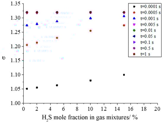 As shown in Figure 19h, micron-sized sulfur particles began to appear significantly in the system after 0.5 s of coagulation time. It indicates that sulfur particles may deposit on the inner wall of the pipeline. In summary, when there is saturated precipitation of simple sulfur in the gathering and transportation pipeline, the precipitated sulfur crystal nuclei may grow into large particles in a very short time, and then deposit. This partly explains the phenomenon of sulfur deposition near the throttle valve.