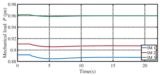 As shown in Table 1, when , (10) can be rewritten as . In this case, the mechanical torque of the induction motor, i.e., , is constant, thus the induction motor’s load is a constant-torque load. When and , (10) can be rewritten as . Considering the facts that the rotating magnetic field speed of the stator, i.e., , is proportional to the grid frequency and that the grid frequency is generally kept at its normal value, is a constant. That is, in this case, the load of the induction motor is a constant-power load. Moreover, when and , (10) can be rewritten as , where we can see that the mechanical power of the induction motor is proportional to . In other words, in this case, the load of the induction motor is a pump load.