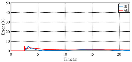 Figure 17 further verifies the the accuracy of the dynamic equivalent model. In this figure, the instantaneous error and accumulative error of the dynamic equivalent model are calculated and presented. To obtain the instantaneous error and accumulative error, the frequency curve of the dynamic equivalent model is selected as in (23) and (24), meanwhile, the frequency curve of the modified IEEE 9-bus system is selected as . From Figure 17, we can find that both the maximum instantaneous error and the accumulative error are less than 5%. From this point of view, the fidelity of the proposed dynamic equivalent model is higher than the detailed grid frequency response model.