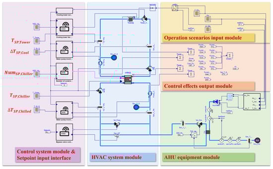 Globally, buildings consume about 36% of the total energy [1], while most of the energy consumption in buildings comes from space heating, cooling, or ventilating systems [2]. Data show that the energy consumption of HVAC systems will continue to grow with climate deterioration and people’s increasing demand for a better indoor environment [3]. Therefore, under the policy of promoting energy conservation and emission reduction, the optimal operation of HVAC systems has become the focus of many researchers. In these studies, the model-based control (MBC) method has received more and more attention [4,5,6,7,8]. In this method, building energy simulation (BES) programs and optimization technologies are combined to guide the operation of HVAC systems [8]. Good results were achieved in various cases using this method, with an average energy-saving rate of up to 13–28% [9,10,11,12,13,14].