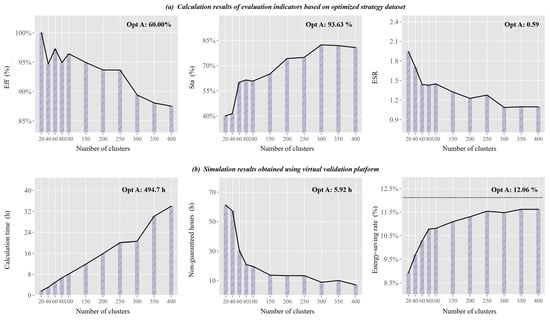 In addition, in Figure 14, we have marked the corresponding indices of the opt A group in the upper right corner. It can be seen from the figure that although the computational efficiency of the proposed method may decrease when the number of clusters is selected to be large, it still maintains higher than that of the opt A group while ensuring a similar energy-saving rate. Therefore, in engineering applications, choosing the number of clusters as many as possible is an effective way to ensure the quality of the dataset.