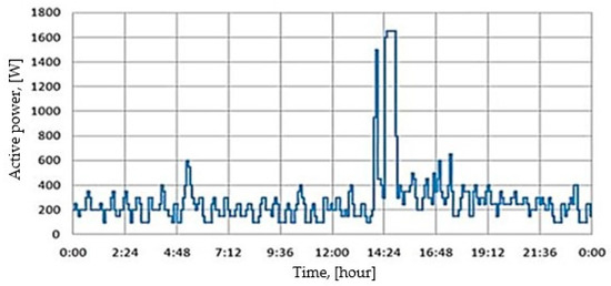 Daily load curve recorded for the household consumer with the active power values in 50 W steps.