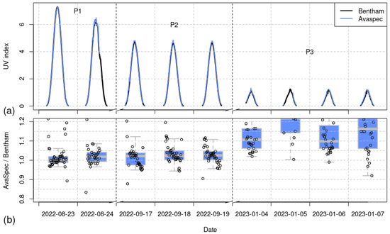 - Gies, P.; Hooke, R.; McKenzie, R.; O’Hagan, J.; Henderson, S.; Pearson, A.; Khazova, M.; Javorniczky, J.; King, K.; Tully, M.; et al. International Intercomparison of Solar UVR Spectral Measurement Systems in Melbourne in 2013. Photochem. Photobiol. 2015, 91, 1237–1246. [Google Scholar] [CrossRef] [PubMed]