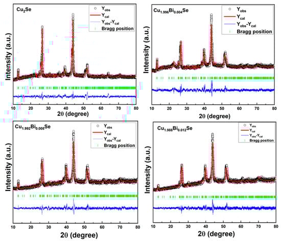- Xue, L.; Shen, W.; Zhang, Z.; Fang, C.; Zhang, Y.; Jia, X. Effects of Bi doping on thermoelectric properties of Cu2Se materials by high-pressure synthesis. Appl. Phys. A 2021, 127, 79. [Google Scholar] [CrossRef]