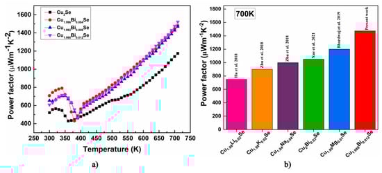 - Mangavati, S.; Gurukrishna, K.; Rao, A.; Petwal, V.C.; Verma, V.P.; Dwivedi, J. Enhancement of Thermoelectric Power Factor in Cu2Se Superionic Conductor via High Energy Electron Beam Irradiation. J. Mater. Sci. Mater. Electron. 2023, 34, 1–10. [Google Scholar] [CrossRef]