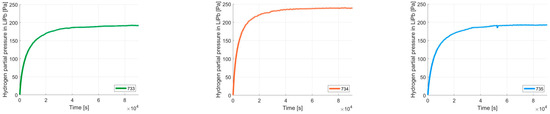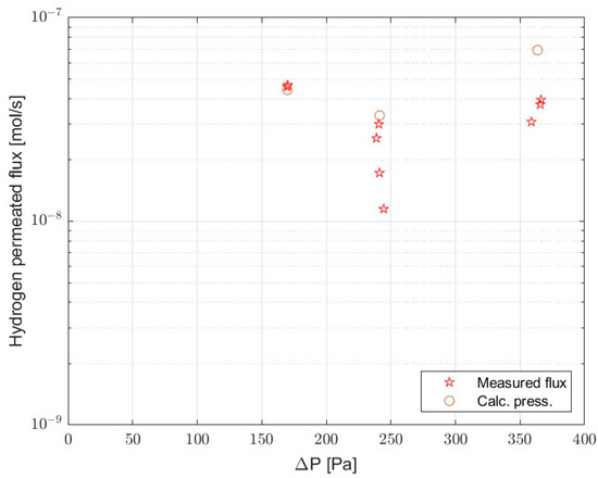 The hydrogen fluxes in mol/s are reported in Figure 6 for the three tests. The order of magnitude of the fluxes was confirmed by performing the pressurization tests, whose results are also included in Figure 6. The pressurization tests were performed once per test.