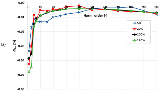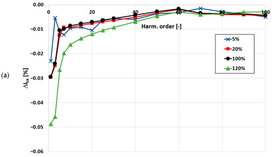 The results presented in Table 2 and Table 3 enable the calculation of the values of the current error and phase displacement for the transformation of a given hk harmonic of the distorted primary current by TCTs using Equations (4) and (5).