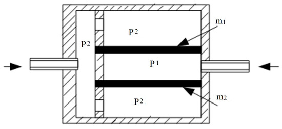 Research on the errors that are caused by acceleration resulted in the proposal of a measurement methodology that utilized a hybrid system that consisted of two transducers, where one performed the task of acceleration compensation (described in [2]). The next stage was to develop the geometry of the transducer that was based on a double-membrane structure and was dedicated to be made piezoresistive with MEMS technology (as shown in Figure 11).