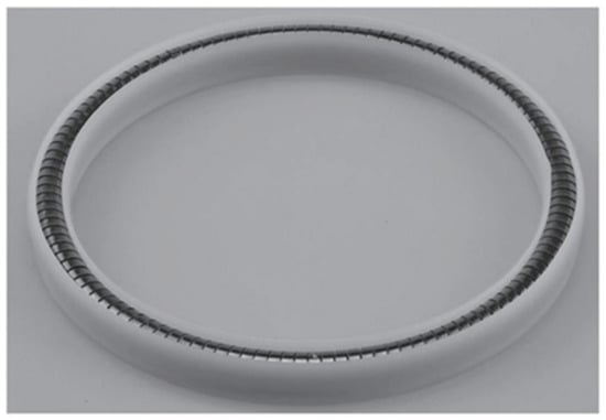 The sapphire glass of the vacuum chamber top cover is designed to be 5 mm thick according to the pressure requirement (a detailed description will be given later). In order to obtain a clearer image, the distance from the outer surface of the sapphire glass of the vacuum chamber to the bottom of the measurement cell of the reactor should not exceed the working distance of the microscope. The working distance of the microscope is 61.5 mm, minus the thickness of two pieces of sapphire glass, while appropriately reserving a certain installation distance; the depth of the reactor is set at 19 mm. Based on the volume of the reactor, 300 mL, the inner diameter of the reactor is selected as 82 mm. According to the design pressure and temperature requirements, the material of the reactor is selected as titanium alloy TC-4. In order to facilitate the sealing, the diameter of the sapphire glass is designed to be larger than the inner diameter of the reactor, which can be pressed in the upper part of the inner chamber of the reactor; at the same time, it is smaller than the outer diameter of the reactor, so that it can be completely placed inside the reactor and clamped by flanges and bolts. After experimental testing and literature research, it was found that the traditional polytetrafluoroethylene (PTFE) O-ring could not meet the sealing requirements under the working conditions of this device. Therefore, the pan-plug seal ring with a better sealing performance, and is more suitable for the extreme conditions of low temperature and high pressure [18] (the structure is shown in Figure 3), was selected as the seal between the sapphire glass and the inner cavity of the reactor.