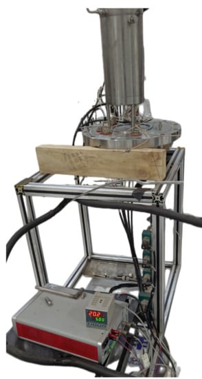 The sapphire window in the top cover of the reactor is aligned with the sapphire window mounted inside the vacuum chamber lid, which also has a maximum visible diameter of 82 mm. Condensation on the outer window is prevented by purging its surface with continuous dry nitrogen gas through a purge port above the glass edge. A jacket is welded to the outside of the vacuum chamber for the flow of liquid nitrogen through the reactor after the heat exchange. This jacket is used to achieve a better cooling of the whole device temperature and also to enable the reactor to be successfully cooled down to the target temperature. Polyurethane foam [23] has good thermal insulation properties, and the outer part of the jacket is filled with polyurethane foam as the outermost insulation layer, which better hinders the heat exchange between the device and the environment. The structure of the vacuum chamber is shown in Figure 7.