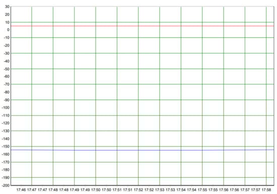 Figure 14 shows the real-time curve recorded by the paperless recorder. The abscissa represents the time, and the ordinate is the value displayed by each channel. Blue represents the temperature inside the kettle, and the unit is °C; the red curve represents the pressure in the kettle, and the unit is bar. Therefore, the above figure shows the changes of pressure and temperature inside the kettle during the period of 17:46–17:58. It is not difficult to see that during this period, the temperature and pressure in the kettle basically did not change.