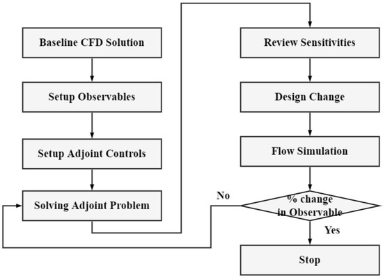 The adjoint solver in ANSYS Fluent is an optimization tool for improving the performance of existing designs by changing the geometry [34]; it identifies the geometry to be changed and calculates the amount of deformation to achieve the design objectives. Since the optimization of a sharp turn channel involves design variables, the gradient-based method was used to find the optimal geometry with respect to the objective function of minimizing the pressure loss in this region (Figure 6).