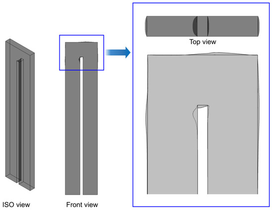 The basic model used in this study is adapted from Metzger et al. [2]. Figure 2 shows the three-dimensional (3D) model of a sharp 180° turn in smooth rectangular channels with non-dimensional quantities (width = 1.0, height = 0.5, and depth = 0.2). The test model consists of an inlet section, a turn section with a divider tip-to-wall clearance, a divider, and an outlet section; the total width between the sidewalls is 0.0699 m and the divider width is 0.0064 m; the space at the divider attachment location adjusts the relative widths of the upstream and downstream channels. The non-dimensional quantities are defined as follows [2]: