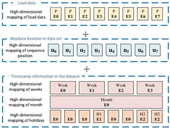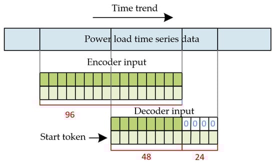 In the sparse self-attention model for long-time series power-load forecasting, the input part consists of three components as shown in Figure 1.