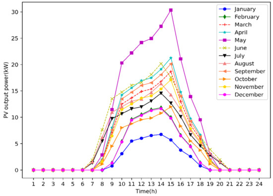 Typical PV output curves in the 12 months of a year.