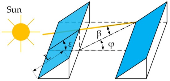 where Db is the spacing between adjacent solar modules installed on a pitched roof, m; is the angle between the roof and the ground, °.