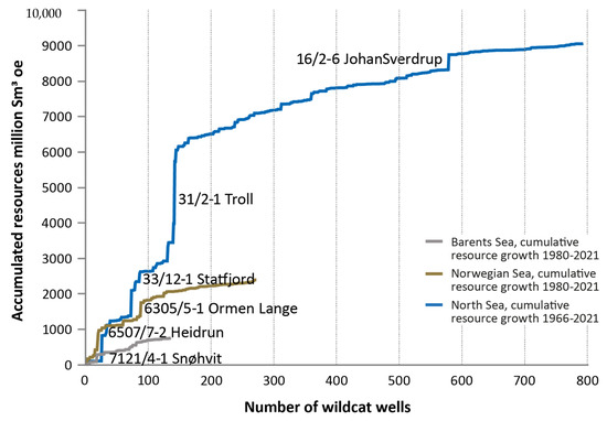 Volumes of explored gas reserves in offshore fields in Norway. Source: [54].