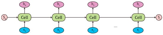 One of the shortcomings of traditional neural networks is the lack of persistence. Recurrent neural networks (RNNs) can imitate human continuous thinking, learn through loops, and retain previous information. Therefore, RNNs are widely used to deal with time-series problems. The basic structure of unrolled RNN chain-loops is presented in Figure 3, where Xt and ht are the input and output, which pass and carry previous information to the next iterative step.