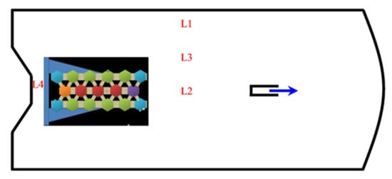 The cabling system in the pump utilizes only ceramic insulation to cope with temperatures above 400 °C during regeneration, that is measured in the cabling system. For temperature measurement, several thermocouples at different positions in the pump, representing outer and inner cartridges, the mounting structure or the cabling channel in the center have been installed. For temperature control during operation and especially during regeneration, the 17 cartridges have been grouped into five sections representing the different thermal conditions, e.g., the edge or the innermost part of the pump. Figure 5 shows the resulting pattern. With a master-slave concept for each of the five sections, all of the cartridges of a section are operated with identical heating parameters determined by the measurement of the condition of their master. As a consequence, the system has to perform the control for five sections only, instead of 17 cartridges. This allows for the reduction of thermocouples and feedthroughs, the simplification of the control system and software and, most importantly, the potential development of a concept suitable for any scale-up to hundreds of cartridges.