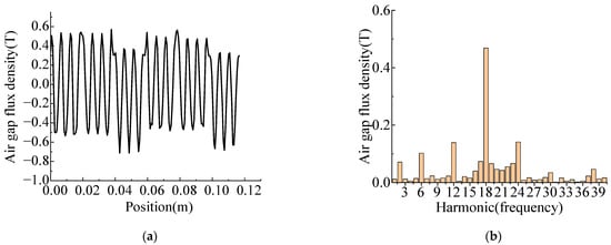 Analysis of air gap flux density and harmonic generated by permanent magnet array: (a) Air gap magnetic density (b) Harmonic content in air gap.
