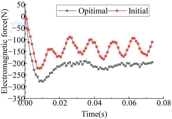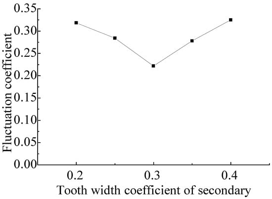 Relationship between electromagnetic force pulsation coefficients and the tooth width coefficient of the secondary tooth.