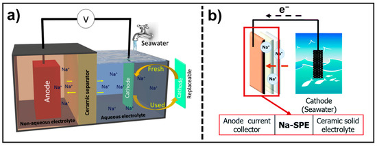 - Kim, Y.; Künzel, M.; Steinle, D.; Dong, X.; Kim, G.-T.; Varzi, A.; Passerini, S. Anode-Less Seawater Batteries with a Na-Ion Conducting Solid-Polymer Electrolyte for Power to Metal and Metal to Power Energy Storage. Energy Environ. Sci. 2022, 15, 2610–2618. [Google Scholar] [CrossRef]