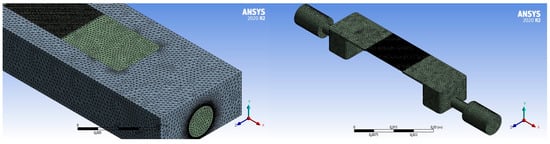 The hex-dominant meshing grid scheme with a free-face mesh type combining triangles and quadrilaterals was used to mesh the systems (for both cases), as shown in Figure 5. The mesh was accomplished in the meshing module with minimum mesh orthogonality of 0.311 (S1, H = 160 µm) and 0.346 (S2, H = 350 µm) and a maximum skewness of 0.56 (S1, H = 160 µm) and 0.61 (S2, H = 350 µm).