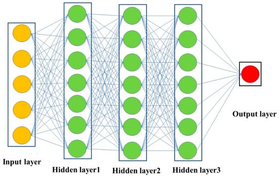 Selecting the optimal topology for a neural network is a complex task and often requires a trial-and-error approach [63]. However, through experimentation, it has been found that a hybrid network architecture with three hidden layers yields optimal results. The three hidden layers contain 5/50/50/50/1 neurons as depicted in Figure 5, while a standalone ANN architecture has 5/100/100/100/50/1 neurons. The input layer comprises five neurons, corresponding to the input variables, while the output layer consists of one neuron.
