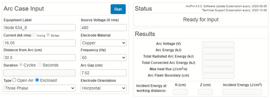 In [31], it is stated that, in addition to alternating single-phase arc scenarios, the current version of this software (ArcProTM 4) can, among other features, perform three-phase arc flash calculations with different electrode orientations using the IEEE 1584-2018 equation, as well as direct-current in-box arc flash calculations. Moreover, the system frequency can be specified (50 Hz, 60 Hz, or 100 Hz) for worldwide and specialized applications, such as generating, saving, and printing warning labels.