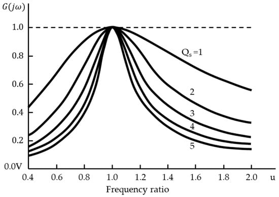 The resonant frequency of the resonant circuit is expressed in Equation (2) based on the resonant inductor and the resonant capacitor . The switching frequency response characteristics are interpreted in Equation (3), and the voltage gain characteristics according to the resonant frequency can be defined as plotted in Figure 5.
