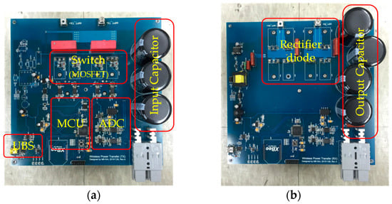 Prototype of the full-bridge series resonant converter. (a) Transmission module; (b) receiver module.