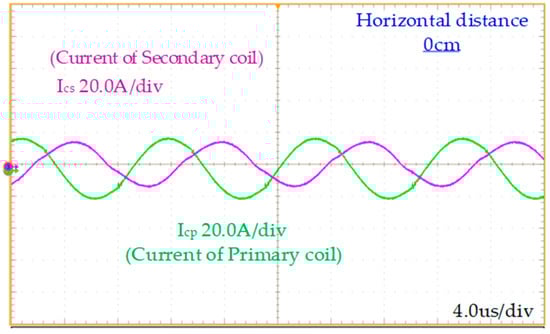 Current waveforms of primary and secondary coils of the 2-coil system (horizontal separation distance is 0 cm).