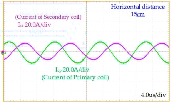 Current waveforms of primary and secondary coils of the 2-coil system (horizontal separation distance is 15 cm).