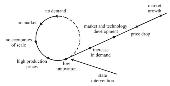 The unreliability of the early photovoltaic market and the effects of state intervention. Source: author’s own work.