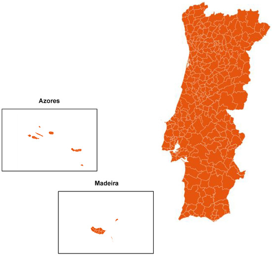 Municipalities are political-administrative divisions of the Portuguese territory. Portugal has 308 municipalities, with populations ranging from a few thousand to more than half a million and areas ranging from 7.94 to 1720.6 km2 (see Figure 7 below).