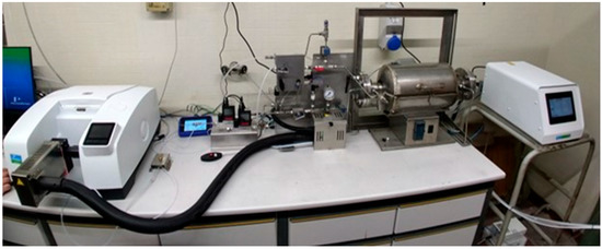 The cell was positioned in a stainless-steel tubular reactor, fluxed with nitrogen (N2) or air, heated up by an electrical oven (PID-controlled) and connected via a transfer line to the gas cell for the Fourier transform infrared (FT-IR) spectroscopy analysis. Figure 2 illustrates a photograph of the laboratory plant for the thermal abuse tests.