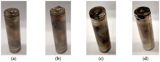 NCR cells sampled after testing: (a) 10 °C/min in air; (b) 5 °C/min in air; (c) 10 °C/min in N2; (d) 5 °C/min in N2.