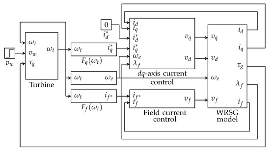 - A static non-linear FEA solution of the WRSG was simulated at the rated speed and current vector . From this solution, the non-linear permeabilities of the WRSG were calculated.