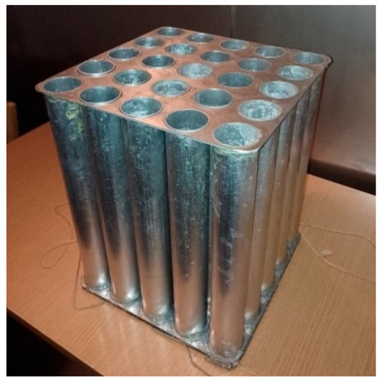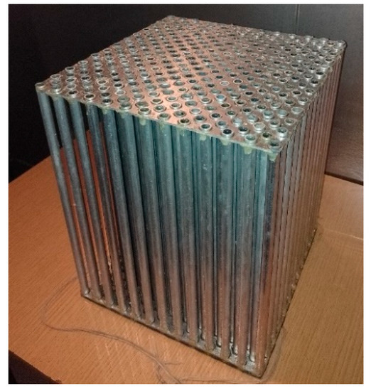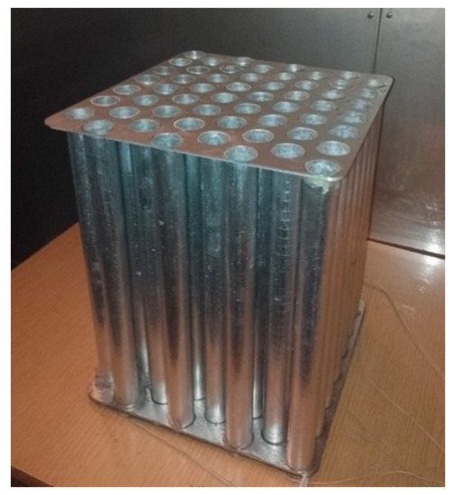 The heat exchangers (Table 2, Figure 5, Figure 6 and Figure 7) are constructed from aluminium cylinders with a wall thickness of 1 mm, differing in the number and diameter of the cylinders.