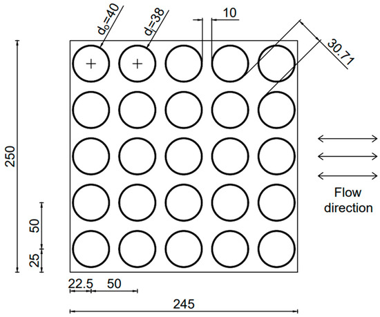 Figure 8, Figure 9 and Figure 10 show the arrangement of cylinders for individual heat exchangers with the determination of the distance between them.