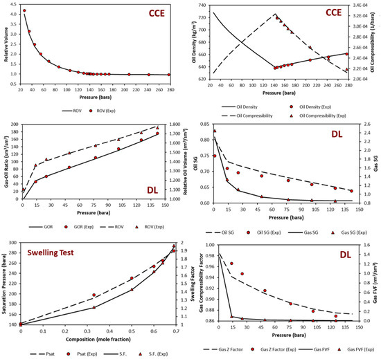 - Negahban, S.; Pedersen, K.S.; Baisoni, M.A.; Sah, P.; Azeem, J. An EoS Model for a Middle East Reservoir Fluid with an Extensive EOR PVT Data Material. In Proceedings of the Society of Petroleum Engineers—14th Abu Dhabi International Petroleum Exhibition and Conference 2010, ADIPEC 2010, Abu Dhabi, United Arab Emirates, 1–4 November 2010; Volume 1. [Google Scholar]