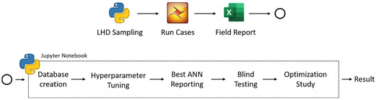 The proxy can be developed properly only if the types of proxy built and data used are known. Failure to perform in sequence will cause an infinite loop between these three sections (problem formulation, model preparation, and proxy building) until the first two sections are determined. An overview that shows the outline of the study, performed with the available software and programming language, is shown in Figure 6.
