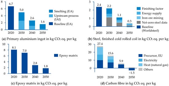 - Suzuki, T.; Takahashi, J. Prediction of energy intensity of carbon fiber reinforced plastics for mass-produced passenger cars. In Proceedings of the 9th Japan International SAMPE Symposium, Tokyo, Japan, 29 November–2 December 2005. [Google Scholar]