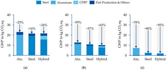 - Reimer, L.; Jois, P.K.; Henkelmann, H.; Meschke, J.; Vietor, T.; Herrmann, C. Systematic Design of Body Concepts Regarding Mini-Mal Environmental Impacts in an Early Concept Phase. In Technologies for Economic and Functional Lightweight Design; Dröder, K., Vietor, T., Eds.; Springer Vieweg: Berlin/Heidelberg, Germany, 2021; pp. 97–109. ISBN 978-3-662-62924-6. [Google Scholar]